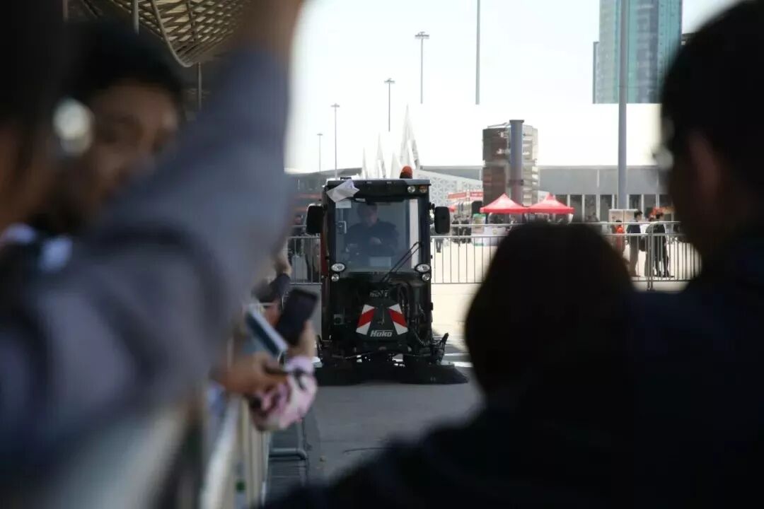 在室外路演展示区,来自中联重科、福龙马、新陕汽、凯驰、神舟汽车等7家环卫设备企业进行11辆新能源环卫车辆、清扫设备的作业演示。现场,演示车辆以“阅兵式”的队形按先后顺序进行实地作业,阵容宏大,场面壮观,成为大会一大看点。