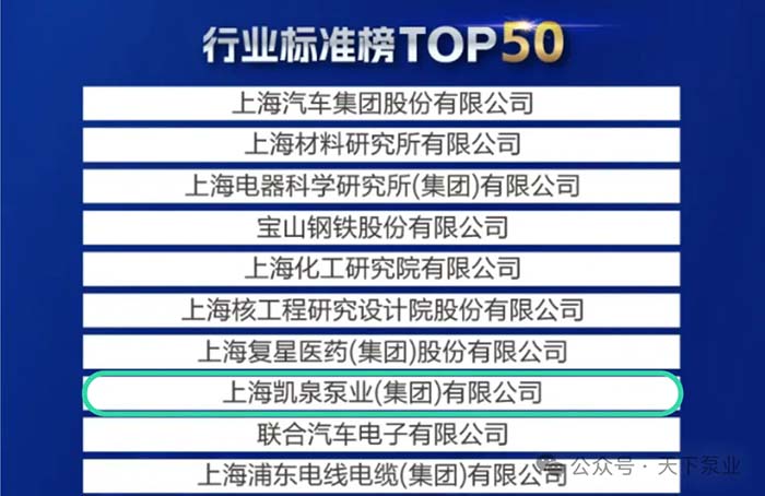 近日,上海市产业技术创新促进会联合相关机构正式发布“2025上海硬核科技企业TOP100”系列榜单。凯泉凭借其在推动行业技术进步与标准化建设方面的突出贡献,成功入选 “行业标准榜TOP50”。