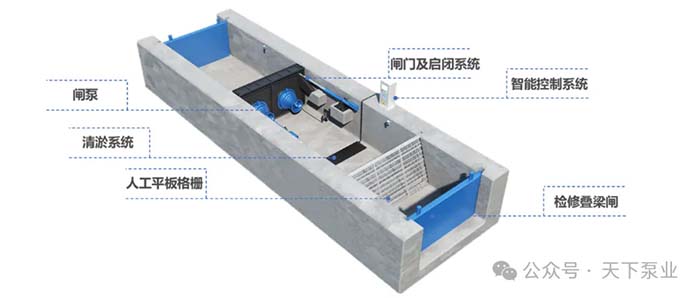 ☆节省占地:泵房和闸站合二为一,无需额外独立泵房,集成度高,节约占地;