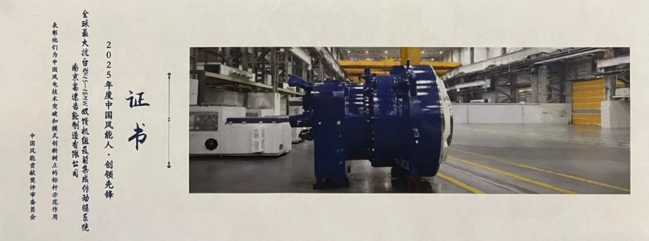 此前,南高齿海上16-18MW、20-22MW全集成中速传动链齿轮箱已相继斩获全球权威媒体《Wind Power Monthly》颁发的“全球最佳传动链金奖”,彰显了其在风电传动领域的深厚底蕴与持续创新能力。此次再获“中国风能人·创领先锋”殊荣,进一步印证并巩固了南高齿在海上风电大兆瓦齿轮箱技术领域的领先地位。
