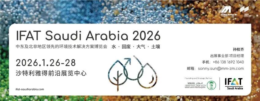 1月26-28日,中国环博会姊妹展-IFAT Saudi Arabia沙特环博会将在利雅得前沿会展中心举行。