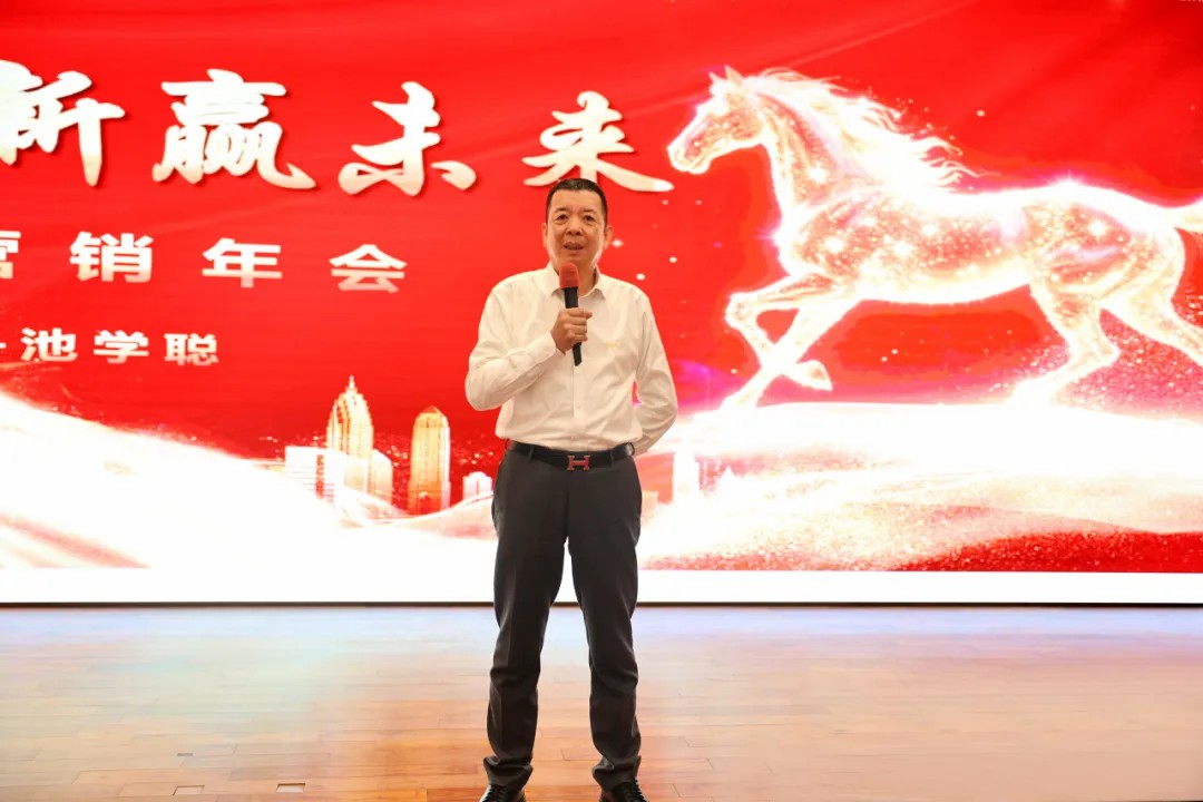 大会伊始,集团总裁池泉先生作年度营销工作战略部署,全面回顾过往战绩,深刻剖析市场形势,并对2026年集团整体战略布局进行系统部署,为全年营销工作锚定方向、明晰路径。
