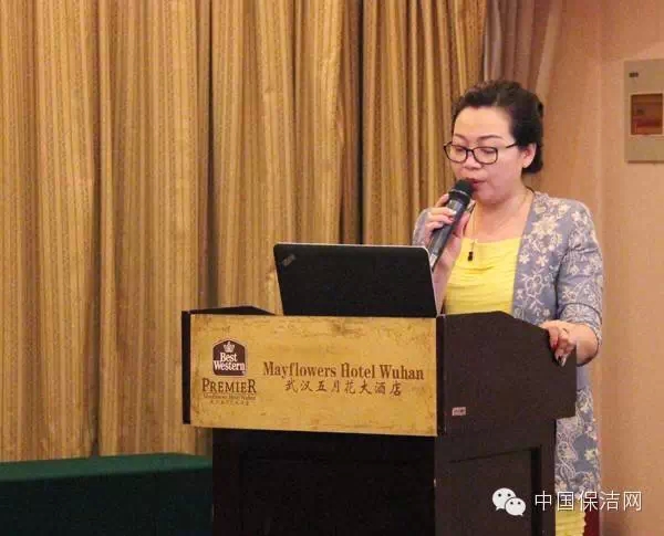湖北省清洗保洁行业协会执行会长王蓓女士致欢迎辞说:“行业的发展离不开各位同仁的努力,感谢新老朋友相聚一堂共谋发展,相约在9月21日发博览会上。”