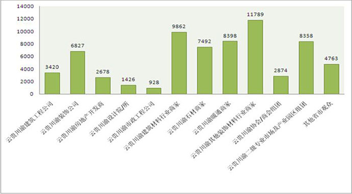为期三天的精彩行业盛会,吸引了来自四川、重庆、云南、贵州、西安等省市建筑工程公司3420人,装饰公司6827人,房地产开发商2678人、设计院/所1726人,市政工程公司928人,建材厂家29143人,暖通商家8398人,行业协会/商会组团2874人,二级专业市场及产业园区8358人,本届暖通展共吸引了64352名专业人士到场参观洽谈合作,现场直接和间接成交额突破6亿元。