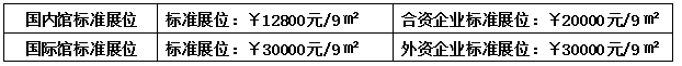 1、标准展位9m²(3m×3m);配置:展出场地、三面展板(高2.5m)、一块中英文楣板、一张洽谈桌、二把椅子、地毯、220V电源插座一个、二支射灯。(注:双开口展位加收20%)
