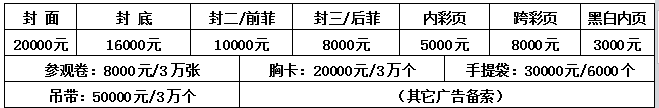 大会会刊及其它广告收费标准