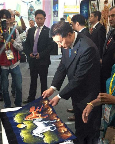 9月24日上午,“2015欧亚经济论坛——首届上海合作组织国家商品展”在西安曲江国际会展中心开幕,国务委员王勇,上海合作组织秘书长德•费•梅津采夫,陕西省委书记赵正永,商务部副部长房爱卿,省委常委、常务副省长姚引良,省委常委、西安市委书记魏明州、副省长王莉霞等领导出席了开幕式。
