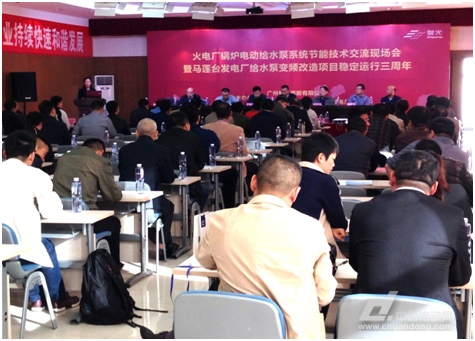 会议上,中铝宁夏能源集团领导和马莲台发电厂领导分别致辞对马莲台发电厂给水泵变频改造项目已稳定运行三周年表示祝贺并对该方案成熟性与运行稳定性给予了充分的肯定。智光节能电厂节能技术研究所所长王立地为嘉宾们深入讲解了火电厂锅炉电动给水泵系统变频改造解决方案。参会代表通过技术交流与改造现场的观摩学习对智光节能火电厂锅炉电动给水泵系统节能技术的先进性、成熟性有了直观的认知与高度的认可。参会代表共同为中国煤电厂节能减排出谋献策,让火电厂锅炉电动给水泵系统节能技术成为燃煤电厂降低能耗指标的新起点。