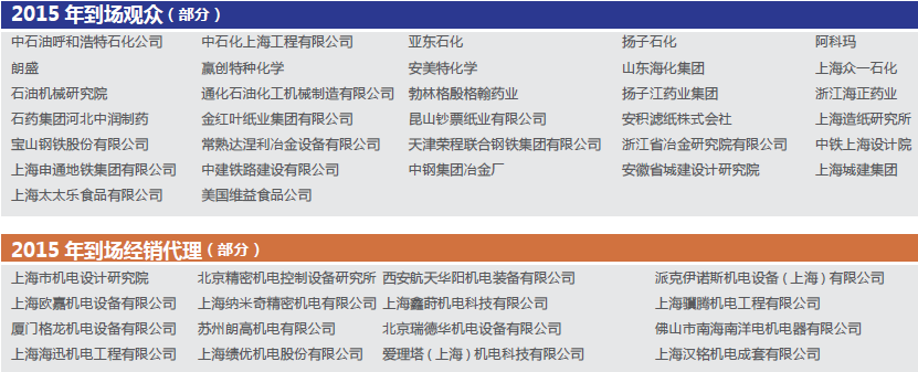 风机和压缩机是输送气体和提高气体压力的机器,应用极广。化工生产中,压缩机更是必不可少、极其关键的设备。以化工和环保水处理为特色的FLOWEX CHINA,拥有强大的专业观众数据库,同期AQUATECH CHINA上海国际污水展、ECOTECH CHINA上海环保展,能够更好的服务各终端应用领域观众。石化、化工、制药类观众比例由2012年的10.27%,增长到2015年的35.94%!展会现场举办石化类行业会议也颇受欢迎,2015年的石油化工环保治理技术交流会十分火爆,赢得展商和观众一致好评。2016年,除了继续石油化工类行业会议,FLOWEX CHINA将针对风机和压缩机推出最新力作!