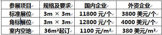 1.标准展位9m²(3m×3m) 配置:展出场地、三面展板(2.5m高)、楣牌制作、一张洽谈桌、二把椅子、九平方地毯、220V电源插座一个、二支射灯;