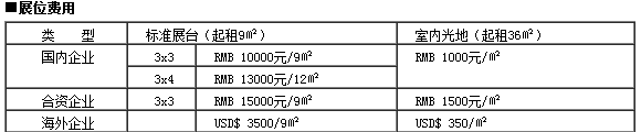 (1)三面展板、地毯、两张问询桌、四把折椅、两盏射灯、一个纸篓、一个220V/5A电源插座及公司楣板〔中英文名称及展台号〕;