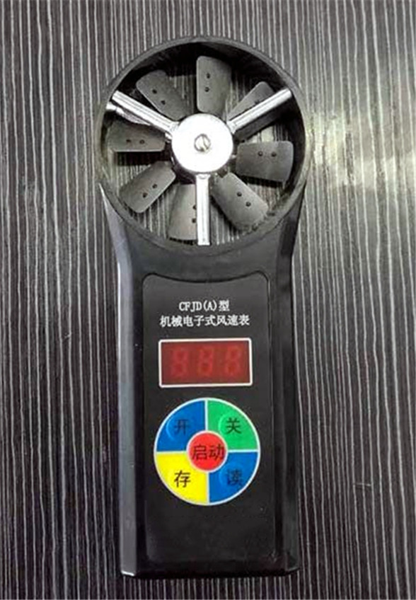 手持式风速表,将风速表放在有风的风口处, 测量时,因为叶轮旋转对光电传感器形成遮挡,每遮挡一次就产生一个光脉冲信号,脉冲信号经计数器传送到微处理器进行运算处理后,从显示器显示出风速数值并且将数值存入存储器保存。