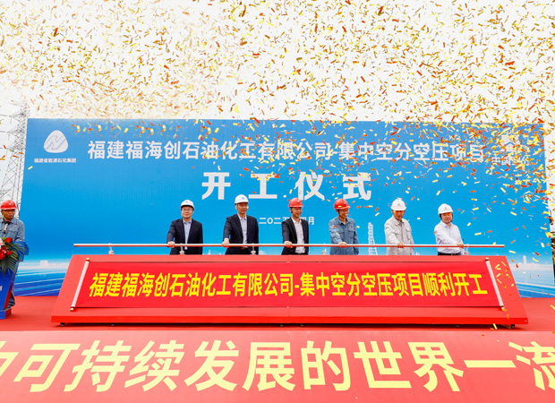 4月18日上午,福建漳州古雷石化基地彩旗招展,中国空分工程有限公司承接的福建福海创7万集中空分空压EPC总承包项目开工仪式盛大举行。作为承载中沙古雷千亿级乙烯项目的"工业之肺",该项目建成后将形成年产7万Nm³/h氧气、9万Nm³/h压缩空气的产能,为全球石化产业高地注入强劲动能。