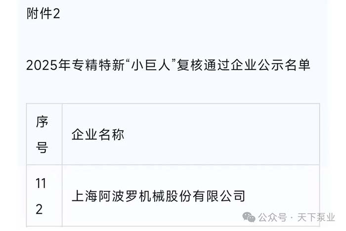 近日,上海市经济和信息化委员会公示第七批专精特新"小巨人"企业名单,上海阿波罗机械股份有限公司凭借在核电领域多年持续深厚的研发积累、卓越的创新能力,通过复核该项国家级荣誉资质!