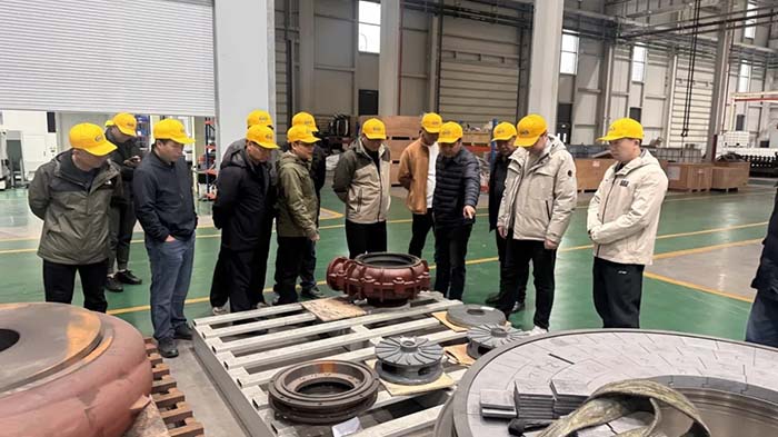 活动伊始,大山选矿厂厂长刘日新、党委书记黄凯一行人在耐普矿机董事长郑昊、总经理程胜等人的陪同下,深入公司生产车间,实地考察了产品制造流程、工艺创新成果及智能化生产线的运行情况。参观过程中,双方就设备性能、材料应用与生产实践中的技术难点进行了现场交流。