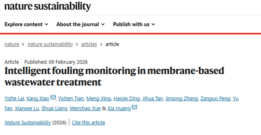 近日,国际权威学术期刊Nature Sustainability发表了一项关于膜法污水处理中膜污染智能监测的重要研究成果。这项研究由中信集团重大研发项目和“清华大学(环境学院)-中信环境技术有限公司先进膜水处理及资源化技术联合研究中心”立项开展,团队成员来自中信环境技术、清华大学、中国科学院大学等单位,以中信环境技术下属的霸州污水处理厂美能MBR膜系统为研究对象。该成果的发表,标志着中信环境技术通过产学研深度融合,在推动水务运营数字化、智能化升级,特别是在膜污染智能预警与膜污染控制这一关键领域取得了突破性进展,是公司践行集团科技引领战略、深化产学研合作结出的又一硕果。