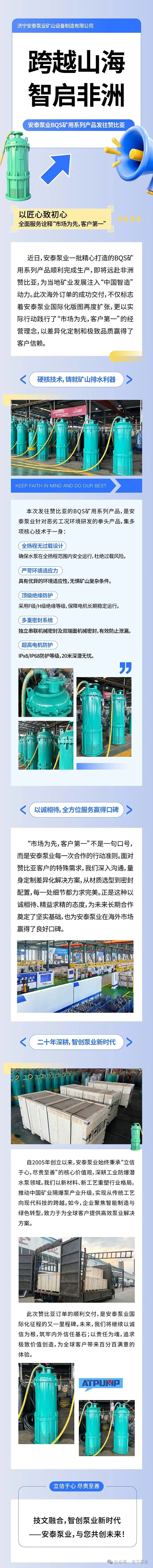 >跨越山海,智启非洲!安泰泵业BQS矿用系列产品发往赞比亚!