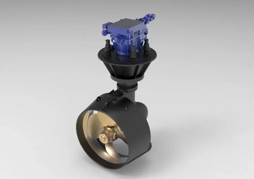 该可调距全回转桨立足船舶绿色化、高端化发展趋势,聚焦行业技术痛点开展针对性研发。产品创新采用双配油器、双反馈结构及多泵集成与内置离合器设计,自主研发PID调控算法,实现主机转速与桨叶螺距的精准联动控制,成功攻克全回转与可调螺距协同运作的核心技术难题。同时,依托一级平行轴与两级螺伞传动的宽速比创新设计,有效突破传统产品对主机转速的适配局限,在结构设计、性能指标等关键维度实现重大突破,填补了国内同类冰级可调距全回转桨产品的技术空白,为行业技术升级提供了重要示范引领。