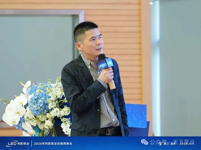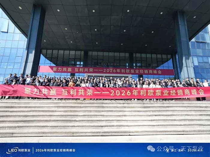2026年4月1日,“聚力共赢 互利共荣——2026年利欧泵业经销商峰会”在浙江温岭召开,利欧集团副董事长王壮利、利欧泵业总裁颜土富、副总裁吴浴阳、民用BU区域总监邓永斌、民用BU区域总监马浩率核心管理团队,与来自全国各地的经销商伙伴齐聚一堂,在“十五五”开局之年,凝心聚力,共启高质量发展新征程。