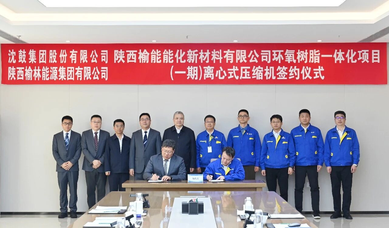 4月8日,沈鼓集团与陕西榆能能化新材料有限公司举行环氧树脂一体化项目(一期)离心式压缩机签约仪式。