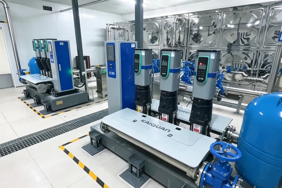 凯泉高效静音供水设备采用控制柜与加压泵组机电一体化设计,将动力、控制、水力单元高度集成。相比传统分体设备,占地面积减少40%以上,为地下泵房释放出更多可用空间,尤其适合泵房面积受限的高层社区。