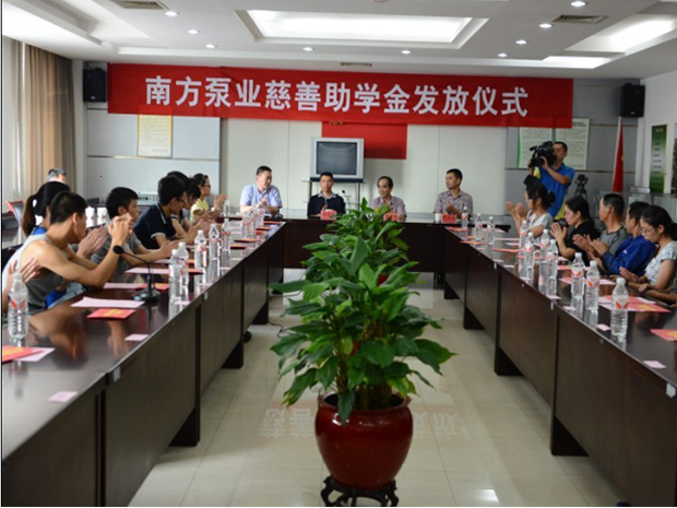据悉,一直以来,公司勇担社会责任,积极反哺社会,曾多次开展献爱心活动,受到社会各界的好评。今年公司与杭州市余杭区慈善总会合作,成立南方泵业爱心慈善基金,基金总额2000万元,将在2013年至2017年间,每年捐出100万善款帮贫助困,其中50万用于助学,50万用于帮助仁和街道范围内贫困家庭。在8月28日的爱心捐助活动中,现场21名仁和街道的受助学子,收到公司现场发放助学金共计7.9万元,其余42.1万元已由区慈善总会发放到其他学生手中。 |