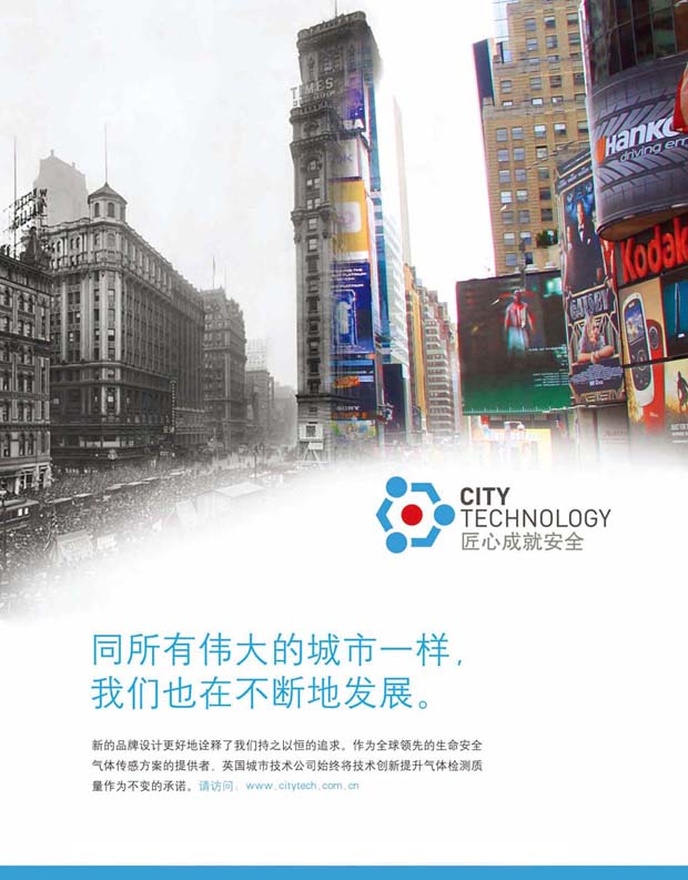 谈到品牌宣传语时,公司市场部总监约翰·沃博顿说:“‘Engineering Safety(匠心成就安全)’结合了城市技术的两大优势。‘Engineering’体现了公司作为气体传感技术领头羊的优良传统和市场声誉,而‘Safety’则指每天有5千万人依赖城市技术的传感器来保护自己。正因为传感器在保护生命安全方面至关重要,新品牌反映了一种生死相依的信赖度。