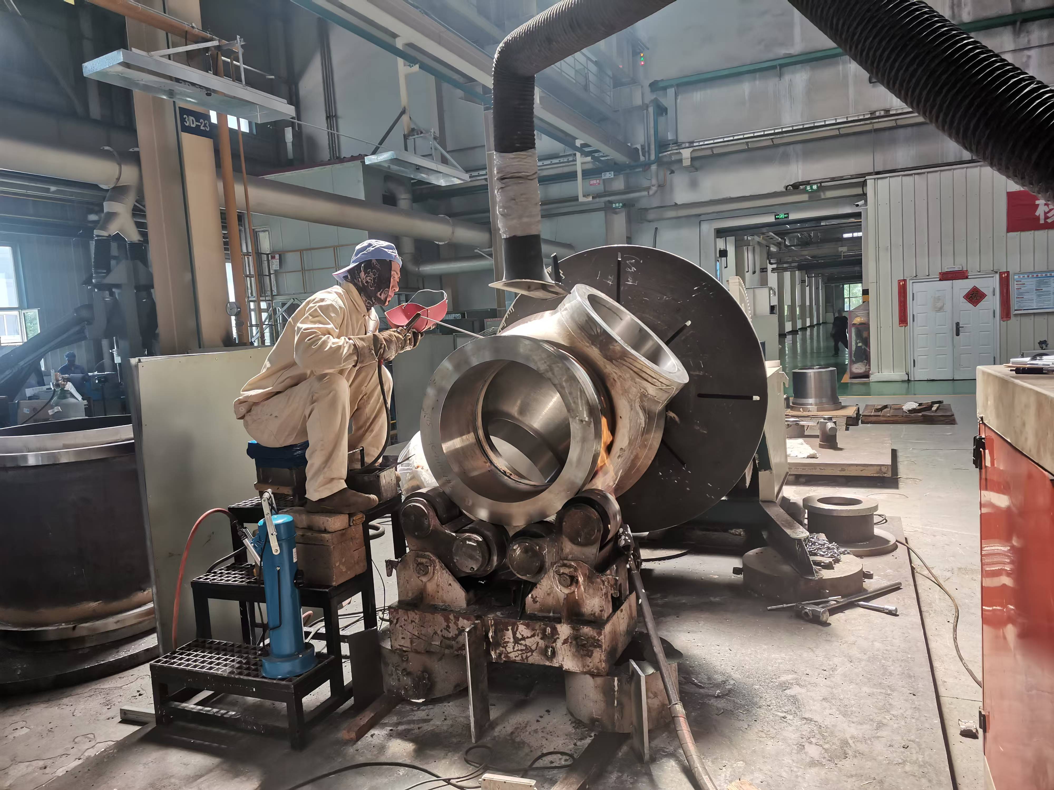 超超临界汽轮机旁路装置是电厂的关键设备之一,特别是在面对国家新型煤电频繁调峰的要求时,其性能优劣直接影响电厂的运行效率。该项目以再热汽温630℃、主蒸汽压力35.5MPa、供电煤耗256.28克/千瓦时、发电热效率突破50%作为示范亮点。也是国家重大专项攻关自主研发新型马氏体耐热钢G115材料的示范点,其焊接工艺研究目前在行业内尚无成熟技术可借鉴,旁路阀门阀体、阀座等关键部件在焊接过程中极易出现冷裂纹、热影响区软化等问题,成为制约项目顺利交付的瓶颈。哈电阀门攻关团队采取“24小时不间断”工作机制,秉持无私奉献的“哈电精神”和精益求精的“工匠精神”,连续奋战40天,顺利实现焊接关键工序破局攻坚。