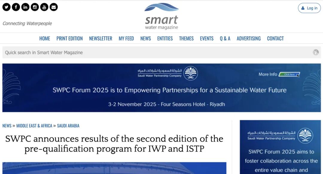 ▼沙特水务公布资格预审名单