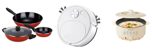 扫地机器人*1、空气炸锅*1、智能破壁机*1、罗马珐琅锅*1、智能电饭煲*1、燕窝复合饮*18、餐具*40、纪念币*500、回力车*800等。