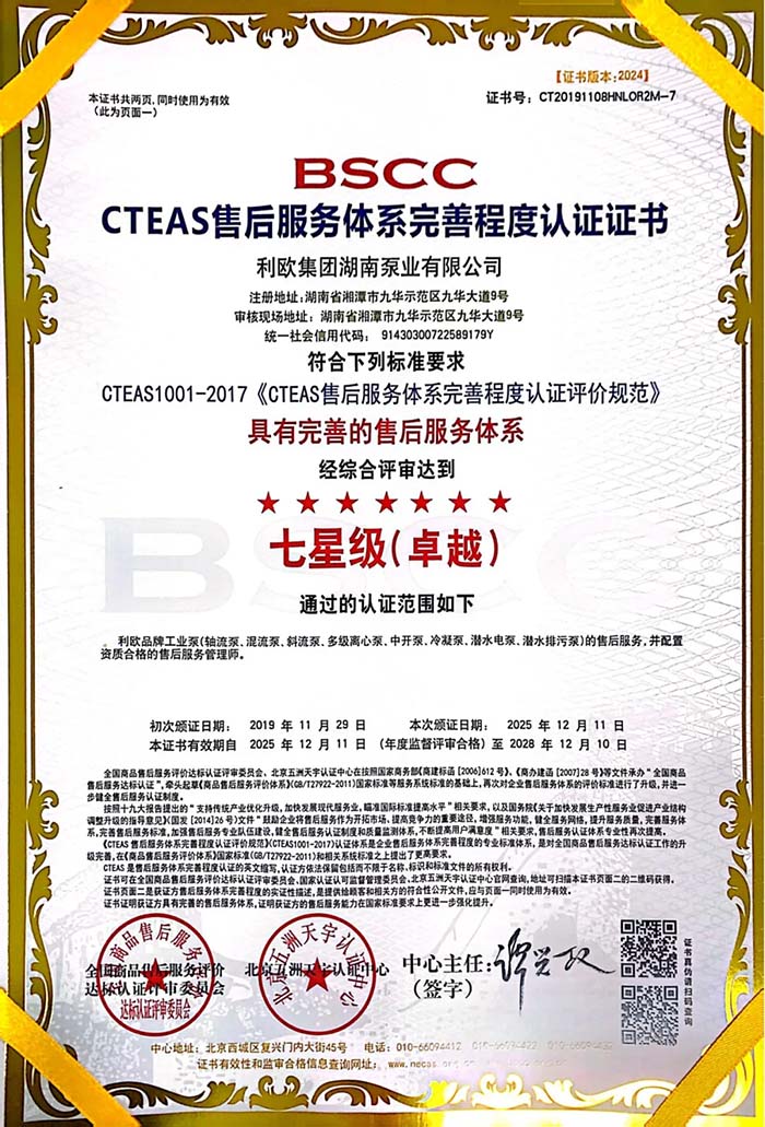 02. 获NECAS五星级与CTEAS七星级认证 近日,利欧泵业凭借专业完善的服务体系和卓越的售后体系,顺利通过“NECAS全国商品售后服务达标五星级认证”和“CTEAS售后服务体系完善程度七星级认证”。