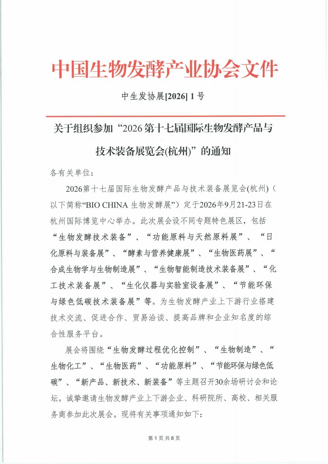 关于组织参加“2026第十七届国际生物发酵产品与技术装备展览会(杭州)”的通知