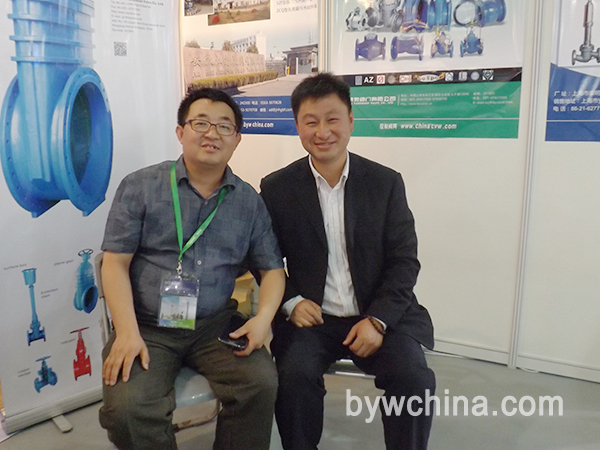 上海艾尔泵阀有限公司梁总(左)前来本网展位交流