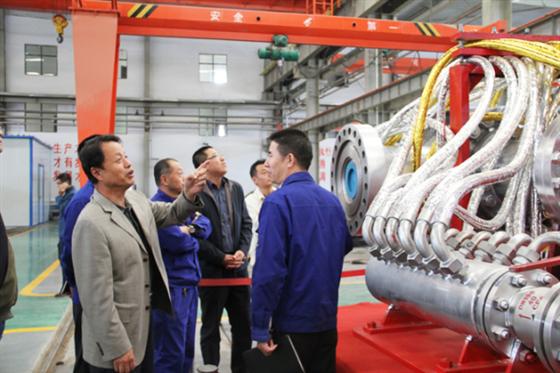 2015年10月13日上午,兰州市政协副主席丁祖全率市政协常委及市物价局、市工信委负责人在西固区副区长李建亮、政协副主席张耀昶等领导陪同下,就“简政放权、行政事业性收费清理情况”莅临兰州高压阀门有限公司调研。兰州高压阀门有限公司常务副总经理郝宏达、行政总监曹锡军等领导陪同调研。