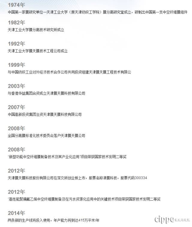 前身是1974年成立的天津工业大学膜分离研究所,我国首家以膜产品为主营业务的上市公司。