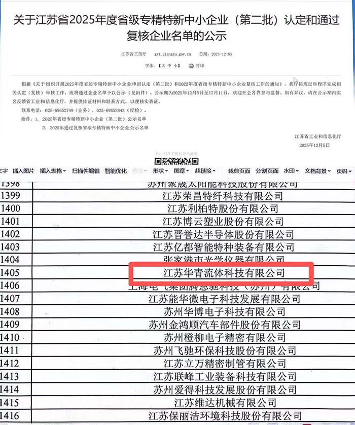 近日,江苏省工业和信息化厅公布2025年度省级专精特新中小企业(第二批)认定和通过复核企业名单,我司成功通过复核,继续保持省级专精特新中小企业荣誉,这是公司发展历程中的又一重要里程碑。