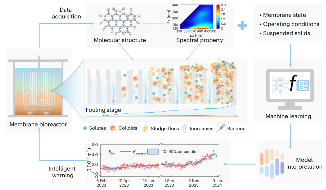 近日,国际权威学术期刊Nature Sustainability发表了一项关于膜法污水处理中膜污染智能监测的重要研究成果。这项研究由中信集团重大研发项目和“清华大学(环境学院)-中信环境技术有限公司先进膜水处理及资源化技术联合研究中心”立项开展,团队成员来自中信环境技术、清华大学、中国科学院大学等单位,以中信环境技术下属的霸州污水处理厂美能MBR膜系统为研究对象。该成果的发表,标志着中信环境技术通过产学研深度融合,在推动水务运营数字化、智能化升级,特别是在膜污染智能预警与膜污染控制这一关键领域取得了突破性进展,是公司践行集团科技引领战略、深化产学研合作结出的又一硕果。