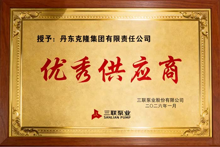 2026年开局之际,以“聚力2026 同心筑梦 共赢新程”为主题的三联泵业年度供应商大会,在安徽和县成功举行。作为国内泵行业重点骨干企业,三联泵业此次集结全国核心供应链伙伴,共探行业发展趋势、深化合作布局。丹东克隆集团有限责任公司凭借过硬的产品实力与高效的协同服务,在众多供应商中脱颖而出,荣膺“优秀供应商”荣誉称号。