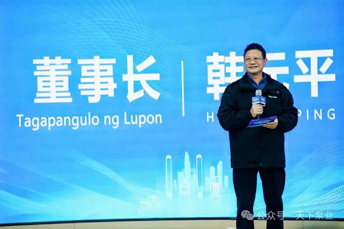 会议伊始,大元泵业董事长韩元平首先致辞,对菲律宾经销商的远道而来表示热烈欢迎。他强调,合作的基础是信任,信任的源泉是情谊。大元愿与菲律宾伙伴因谊而合,携手共进,共谋发展。