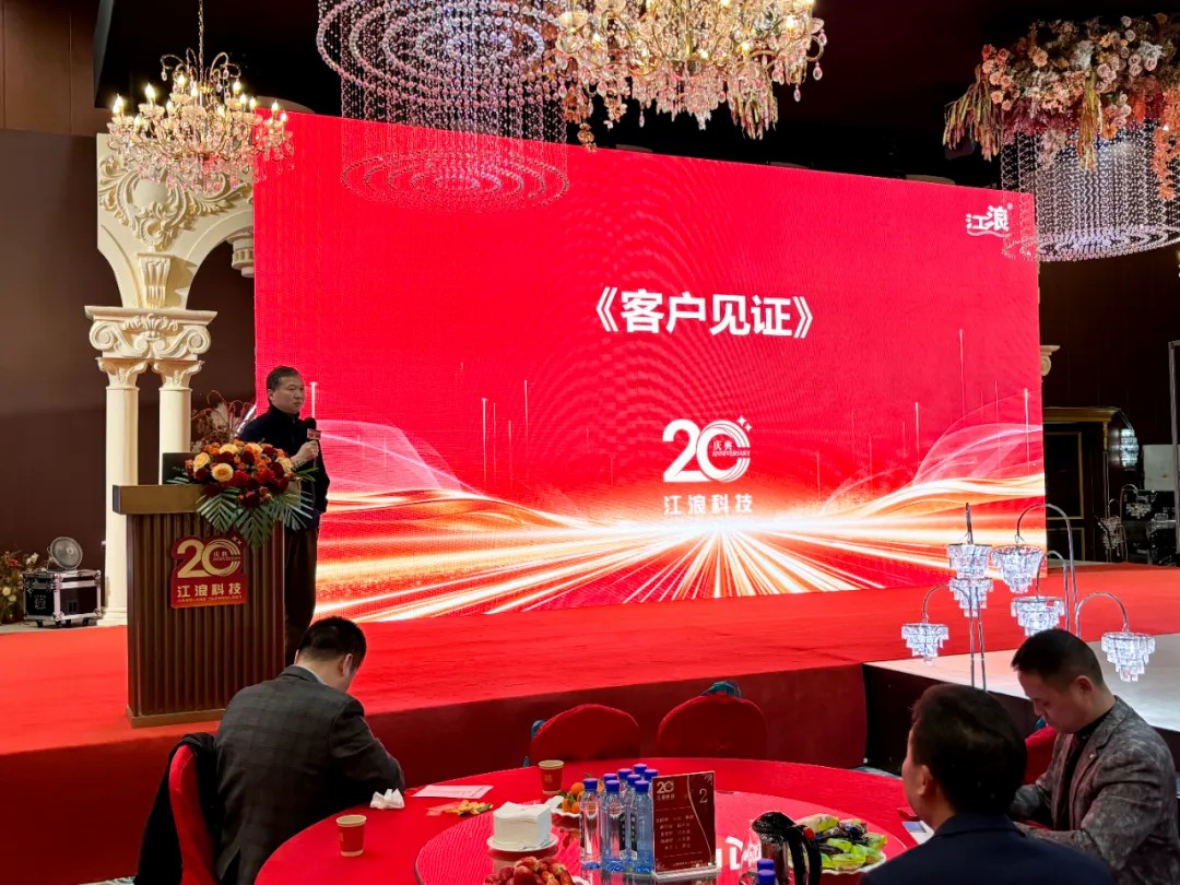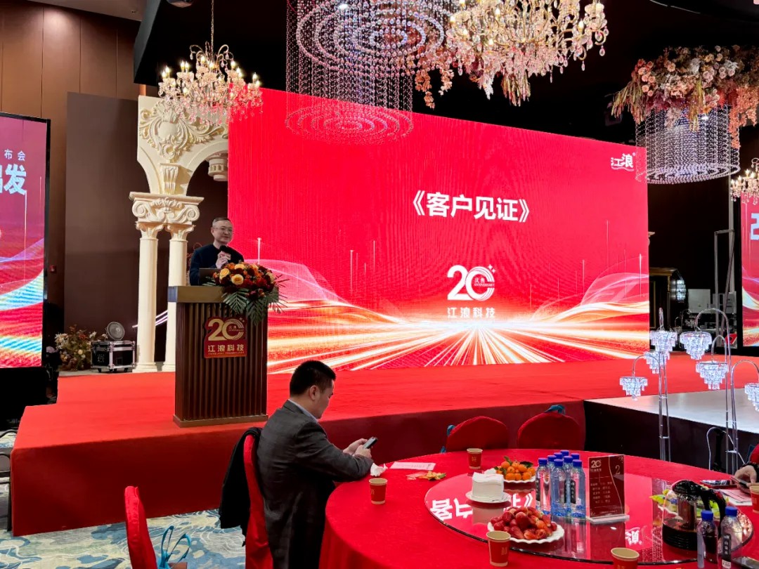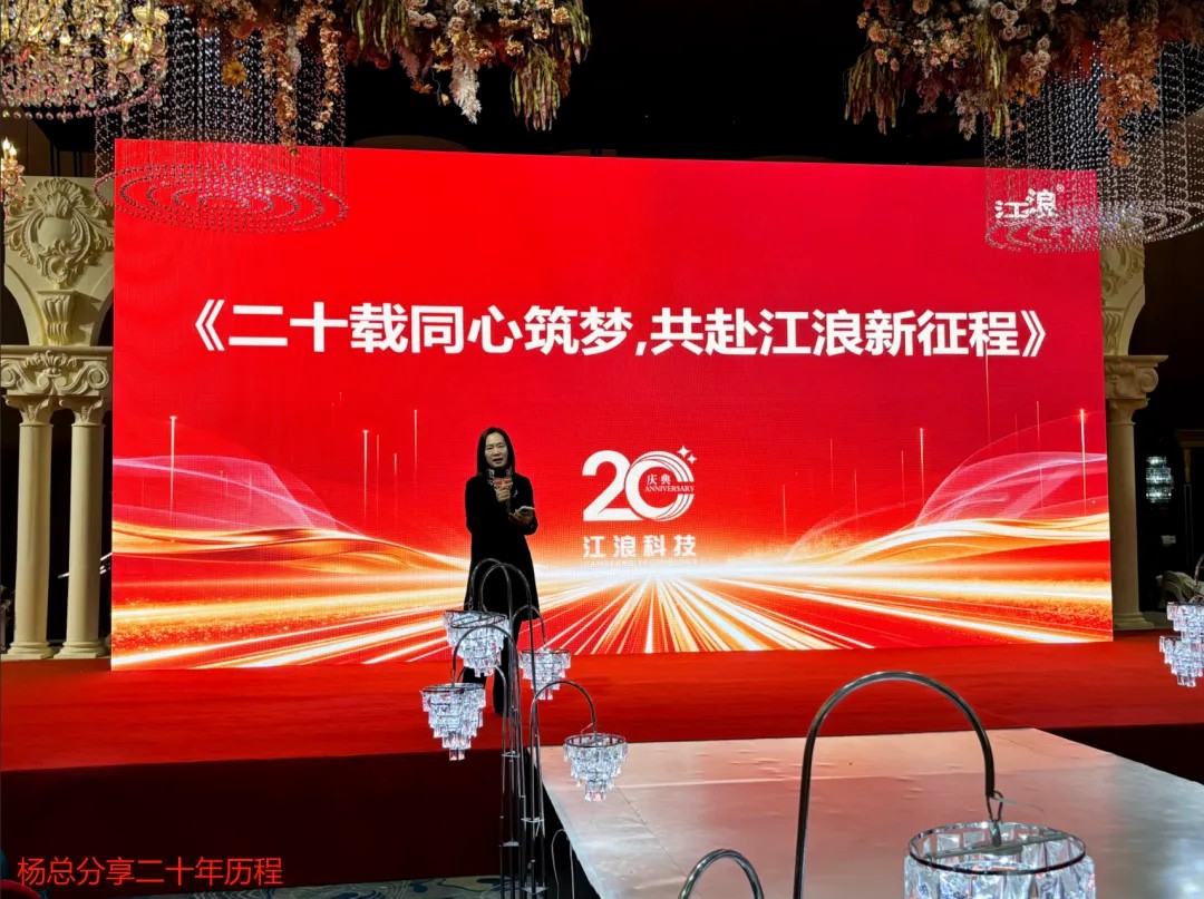 江浪科技成立 20 周年庆典活动,众多地区领导、嘉宾、合作伙伴和员工齐聚一堂,共同回顾公司 20 年发展历程,展望未来发展方向,期间还进行了新产品揭幕、颁奖、抽奖等环节