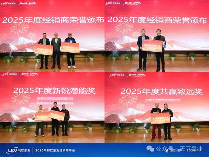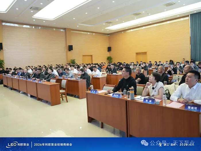 2026年4月1日,“聚力共赢 互利共荣——2026年利欧泵业经销商峰会”在浙江温岭召开,利欧集团副董事长王壮利、利欧泵业总裁颜土富、副总裁吴浴阳、民用BU区域总监邓永斌、民用BU区域总监马浩率核心管理团队,与来自全国各地的经销商伙伴齐聚一堂,在“十五五”开局之年,凝心聚力,共启高质量发展新征程。