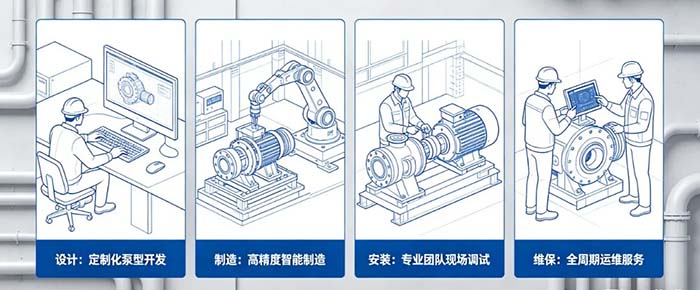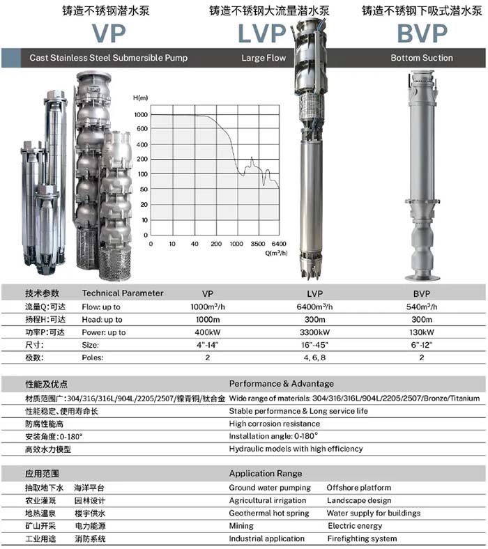 超强抗沙耐腐:采用304/316/316L/双相不锈钢铸造,抗沙能力达350g/m³(普通产品7倍以上),扬程衰减率极低;