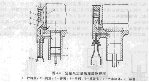 对于这种定量方法,若要改变每次的灌装量,则只需设法调节活塞的行程。