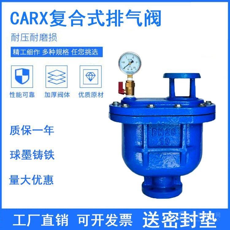 永一阀门集团有限公司CARX复合式自动排气阀用于管路上的最高点或有闭气的地方,排除管内的气体来疏通管道,达到正常工作,如不装排气阀,管内流动的液体产生动热引起气体,形成短路,使管道出水容量达不到要求,...